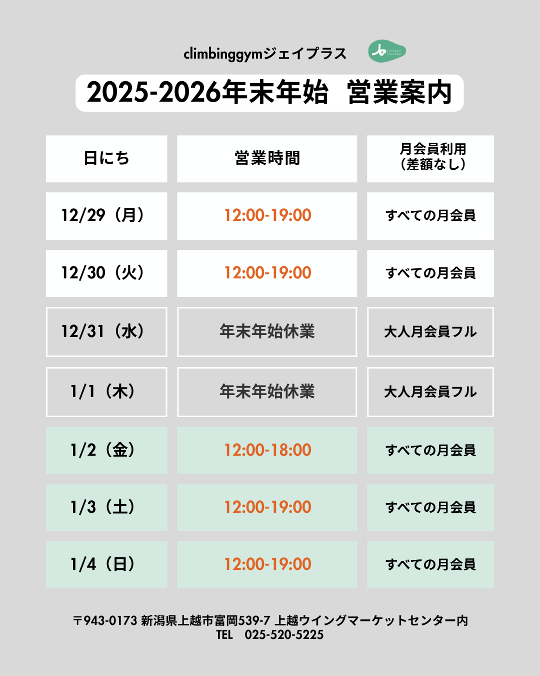 2025/12/31(水) 年末年始休業