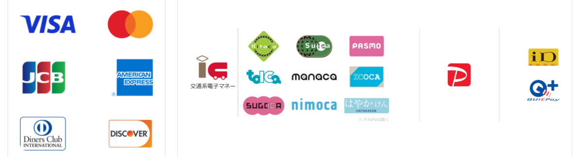 受付可能な支払方法は現金のほか、下記の通りとなります。